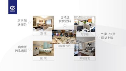 以楼宇室内场景为主的配送机器人当前的主要应用领域是酒店、医院、写字楼、无人餐饮店等,酒店用于客房配送服务,医院用来为病房配送医药品,而写字楼和高端住宅楼目前则是将用于外卖和快递最后100米送货上楼。在配送过程中,机器人需要完成自主乘坐电梯、自主规划配送任务的行走路径、自动拨打收/发货人手机等主要工作。