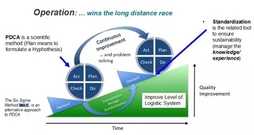 Thomas Geiger则分享了德国是如何固化标准并认真执行的——员工培训。不难想象,连做饭的工具都有一系列严格标准的德国,在制造方面的认真劲儿自然不会少。据Thomas Geiger介绍,德国通过标准的物流实训中心实践(Logistics Training Centers)在按照工厂结构真实搭建的培训中心内对各岗位员工进行轮流培训。经过培训的员工不仅物流操作水平大幅提升,而且能够直接胜任工厂内部培训的培训师。