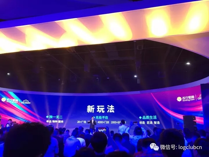 (图:发布会现场布置颇有深意,阐释苏宁易购优势)