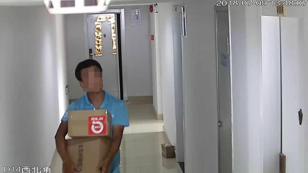 图说:犯罪嫌疑人将快件拿走 来源/警方供图