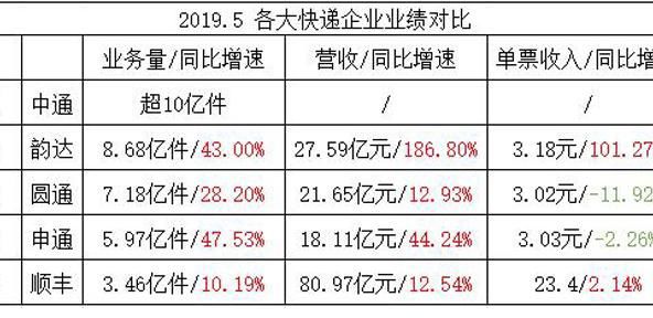 据快递行业2019年5月最新的行业信息显示,快递包裹业务量再次创新高,月度业务量超过52亿件,同比增长25%。然而,顺丰业务量却仅排第5名,榜首的中通超顺丰2倍多!
