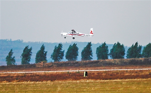 10月28日,RX4E飞机在空中飞行。当日上午,随着一阵轰鸣声,我国自主研制的首架四座电动飞机RX4E冲破风雨,在辽宁沈阳财湖机场首飞成功。