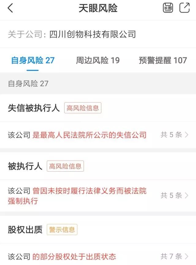 10月28日消息,据天眼查显示,人人快送的运营主体公司——四川创物科技有限公司因未按时履行法律义务而被法院强制执行。从2019年8月14日至2019年10月14日,该公司共有五条失信被执行的记录,围绕该公司的劳动人事争议仲裁等,“有履行能力而拒不履行生效法律文书确定义务”。