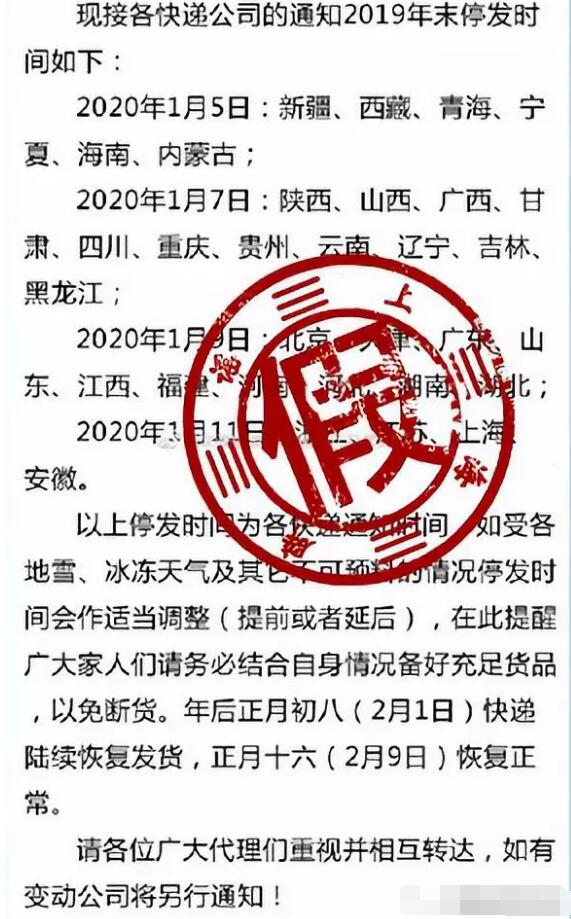 近日,一张全国物流停运通知在业内各大媒体平台上流传,其中标注了全国各地物流的停发日期。然而实际上,这不过是个谣言,每到年终就会上演,成为部分企业的营销手段。