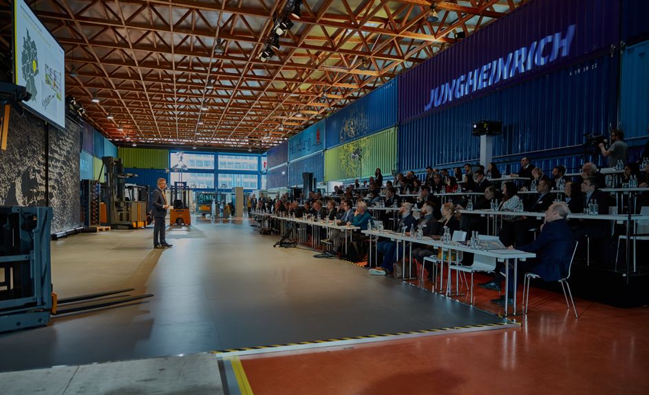 开幕仪式由销售总监Christian Erlach主持并揭开了本次发布会的主题:电动叉车。再次将目光聚焦在了锂电池能源技术领域。