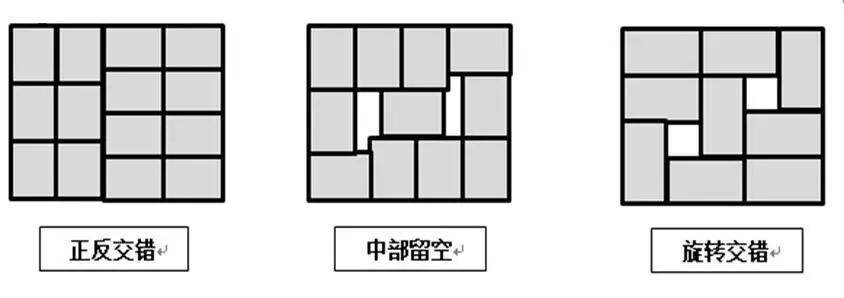 托盘平直堆存适用于周转频次高的仓库,此形式为保证单位面积利用率最高,需注意托盘利用率问题。托盘组托形式是关键控制点,组托形式多样,需根据货箱尺寸选择利用率最高的形式,常见的组托形式有正反交错、中部留空、旋转交错等形式。