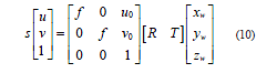 将式(9)代入式(8)中,得到空间点的图像坐标与实际三维坐标之间的关系为[6]