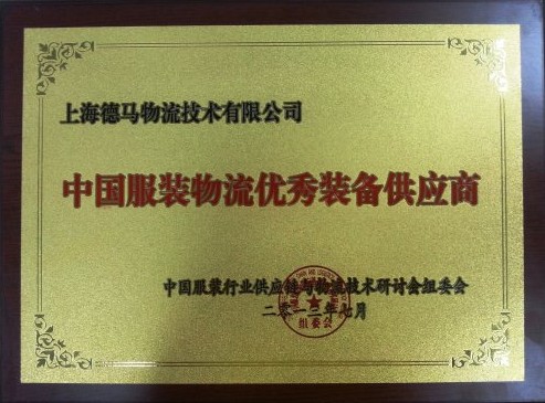 7月18日,上海德马物流技术有限公司荣膺“2013中国服装物流优秀供应商”奖。