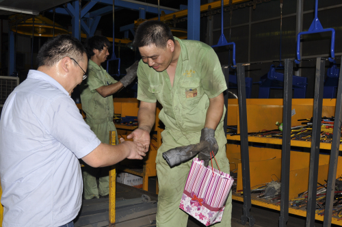 7月18日,县桃源街道副主任崔绍章、街道工会主席陈建杰等领导顶着烈日,迎着热浪,带着慰问物品来到如意,亲切慰问了高温下仍坚守岗位的一线员工,并叮嘱大家要合理安排休息,注意防暑降温。员工纷纷表示,领导送来的是清凉,感到的是温暖,在今后的工作中一定会坚守工作岗位,为公司的发展贡献自己的一份力量。