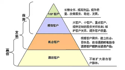其一是不同的客户对于企业的价值不同,也就是人们常说的:企业80%的利润来自20%的客户。这20%的客户就是企业的"黄金客户"。因而,理所当然要对最有价值的客户给予最多的关注和投入。对于可以为企业带来一定利润的大多数客户来说,企业要做的就是将他们吸引到核心层客户中去。对于那些没有盈利潜力的客户,则可以"解雇"他们。