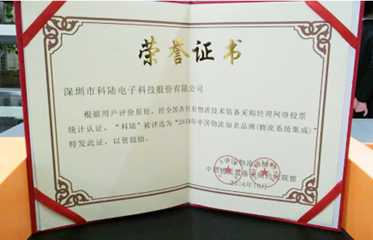 深圳市科陆电子科技股份有限公司荣膺“2016年中国物流知名品牌(物流系统集成)”奖项,科陆自动控制事业部总经理张言少先生作为获奖嘉宾上台领奖。此次荣获“2016年中国物流知名品牌奖 ”,再次验证凭借长期积累沉淀的强劲实力和始终如一的卓越服务,科陆已得到业界高度肯定,专注、专业的形象已深入人心。