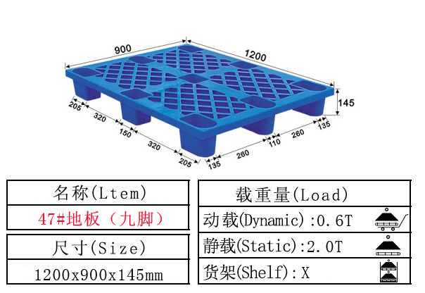 耐老化性、防静电性、抗冲击性。双面热合平板、一次成型双面网格、单面川字底、单面田字底、九脚型各种规格尺寸齐全。适用于