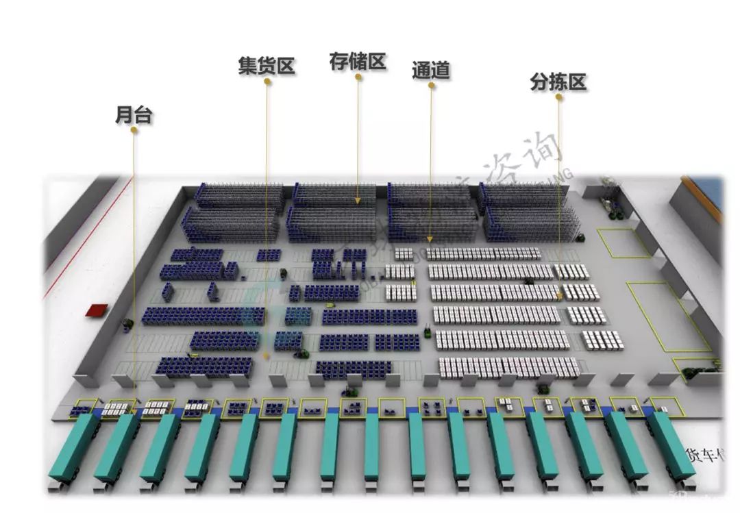 面积(空间)就是仓储的“实”。功能区的测算我们可以进行归类,不一定每个功能区都要有一个计算方法,归类以后,一类的功能区就可以调用一个方法,只是不同细分下参数不同而已。我们将功能区分为:月台、存储区、分拣区、集货区(缓存区)、通道,基本上所有的功能区都可以由这几个类型组成。