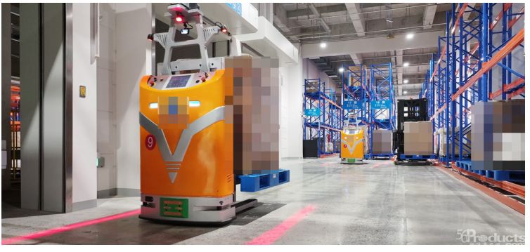 在工业制造行业,宇锋智能依靠堆垛式AGV+三向叉式AGV接驳取放货,室内外复合场景搬运,形成高效存储效率和极大的库位使用率。