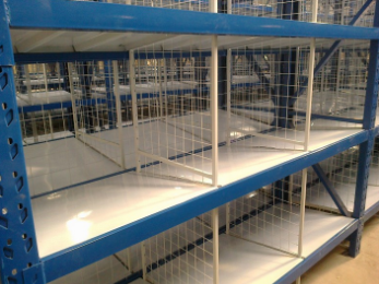 上图是安装好服装仓库货架、后的图片,隔网已经装好。